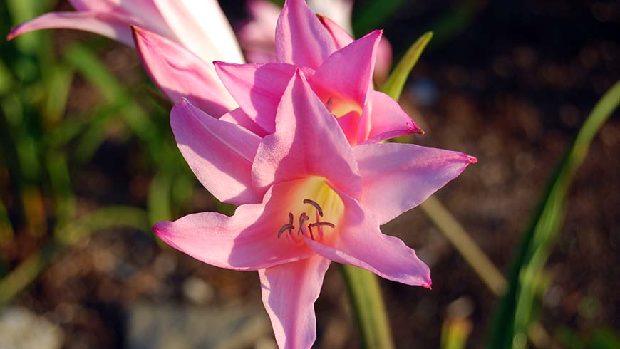 Луковицы амаркринума Говарда весной высаживают в грунт, заглубляя в почву наполовину. Можно выращивать в комнатном горшке. Место для размещения растения выбирают солнечное, проветриваемое, но без сквозняков. Высота стеблей достигает 60-70 см. Цветет в конце лета — начале осени. Цветы по форме напоминают лилии. Окрашены лепестки в нежный розовый цвет. Серединка и тычинки немного желтоватые. Сорт амаркринума Говарда великолепно смотрится в одиночных посадках. В смешанных цветниках следует придерживаться такого соседства, чтобы растение не затерялось среди других культур.