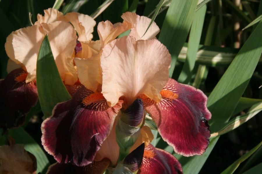 Рассада германских ирисов Циммарон Стрип (Cimmaron Strip) поможет в оформлении любого типа цветников, добавляя им нежности и привлекательности. Растение достигает в высоту 75 см, листья его плоские, имеют форму меча и не слишком толстые. Великолепный цветок достаточно крупный с верхними лепестками насыщенного оранжевого цвета и нижними – бордового и фиолетового оттенка. При цветении ирис Cimmaron Strip отличается устойчивостью к морозам. Также растение любит много света и отлично произрастает в черте города, в связи с чем, часть используется для насаждений в парках, около водоемов. А вот при плохой влажности цветки начинают быстро вянуть.