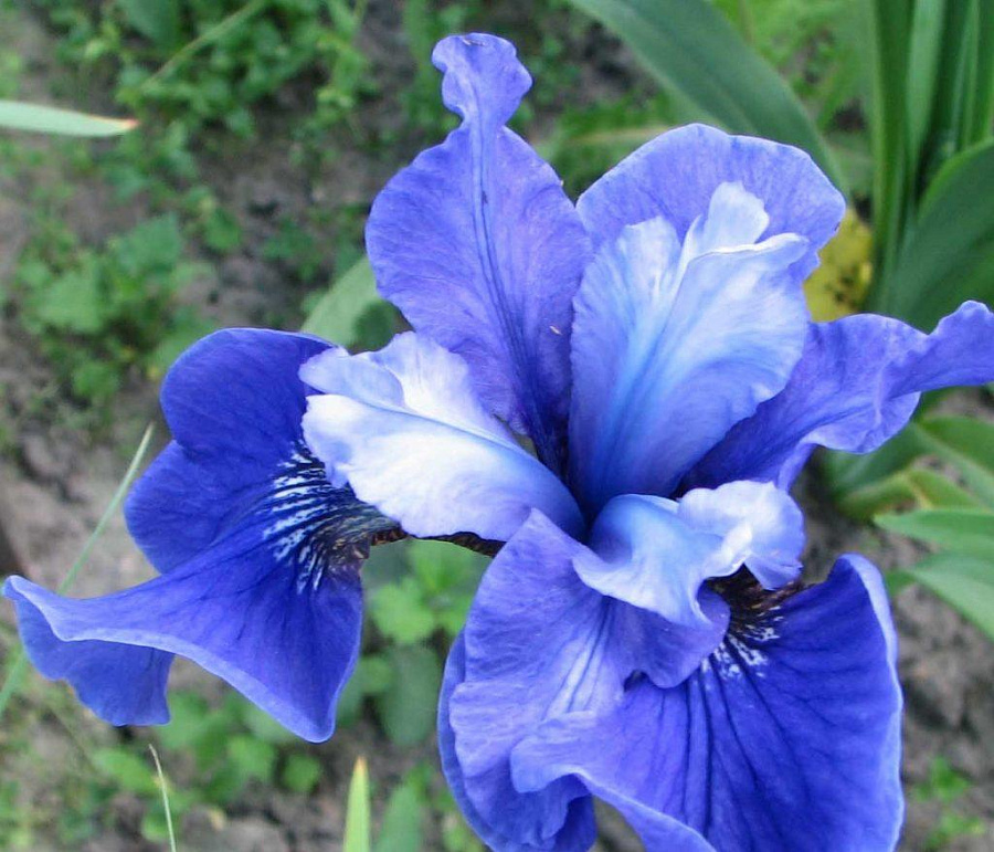 Рассада ириса сибирского Эго (Ego) очень популярна среди цветоводов благодаря своим устойчивым к морозам корням и плотным зеленым кустам. Цветение у этого растения продолжительное. Бутоны классической формы на тонких стеблях имеют светло-синий оттенок с белой стрелой на нижних лепестках.