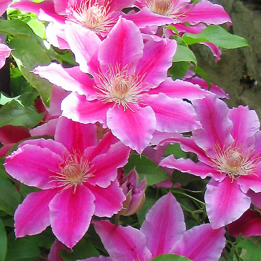 Листья клематиса имеют изящную форму, что придает растению особый шарм. Для выращивания Bees Jubilee выбирайте солнечные или полутенистые места, где он будет чувствовать себя комфортно. Растение требует умеренного полива и регулярного удобрения для обильного цветения.