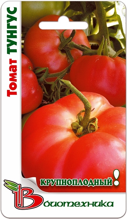 Семена томата "Тунгус" (Tungus) – сорт, который предназначен для выращивания в теплицах и подходит для посева в открытом грунте. Период от массовых всходов до начала созревания составляет 100-102 дней. Растение среднерослое. В теплицах высота может достигать 1,5-1,8 метров. В каждой кисти завязывается 5-6 плодов. Помидорки плоскоокруглой формы, слаборебристые, гладкие, блестящие, красного цвета. Плоды первой кисти могут быть сильно-ребристые и набирать массу до 1 кг. Вес урожая последующих кистей меньше, 400-450 грамм. Мякоть сахаристая, мелкосемянная. Плоды используются для приготовления салатов.